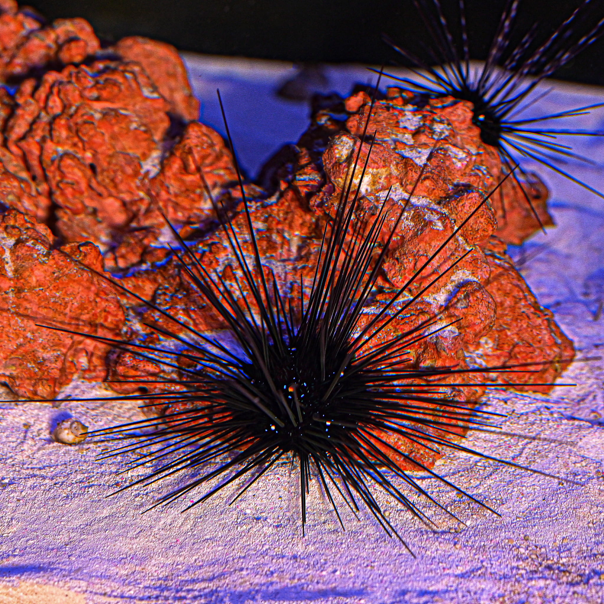 Diadema setosum - jeżowiec Long Spine Urchin Bardzo popularny jeżowiec - świetny glonożerca. Posiada długie kolców, które wyczuwają ruch wody koło siebie, kieruje w je stronę zagrożenia, nadaje się także do zbiorników z drapieżnikami stanowiącymi zagrożenie dla innych bezkręgowców.