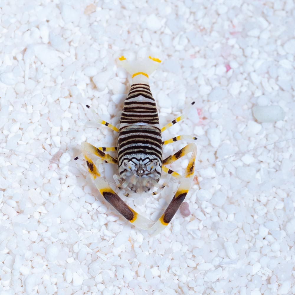 Bardzo malutkie krewetki, które kolorystyką przypominają trzmiele idealne do małych zmiorników żywią się odnóżami rozgwiazd oraz wężowideł jednak nie jest to jedyny element diety.Bez problemu przyjmują pokarmy mrożone tj. Artemia czy Mysis.