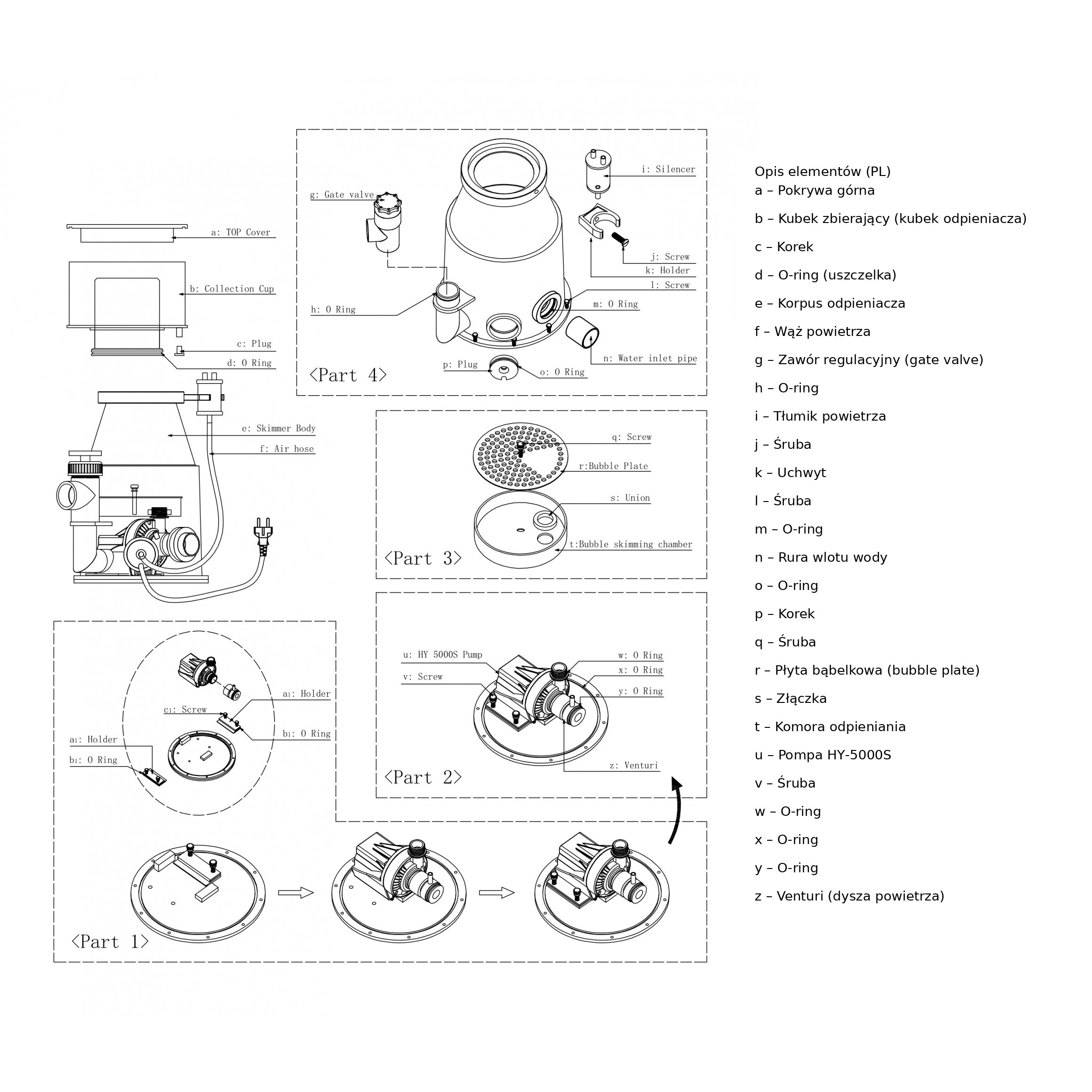- Zdejmowana płyta redukująca turbulencje dla lepszego kontaktu wody z powietrzem